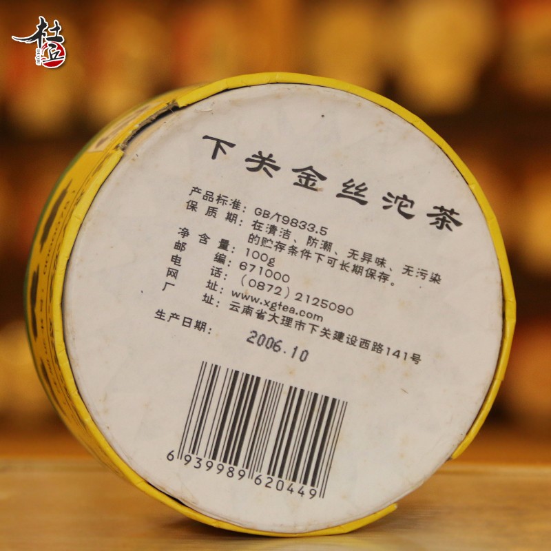 云南 普洱茶 下关 2006年 金丝沱 盒装 生茶 沱茶 100克/沱——包装正面