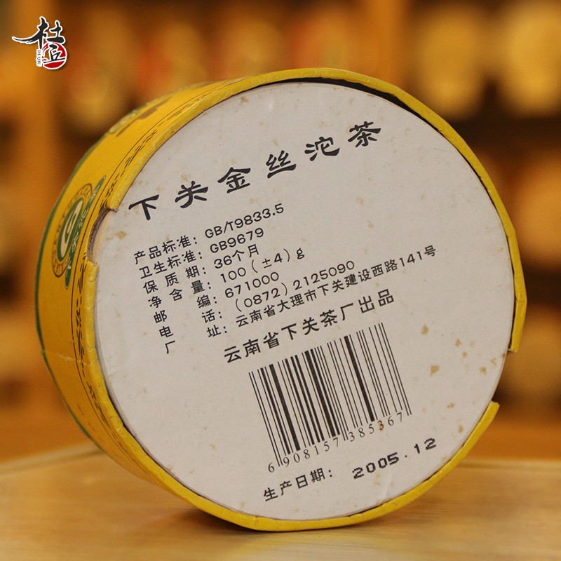 云南 普洱茶 下关 2005年 金丝沱 盒装 生茶 沱茶 100克/沱——包装正面