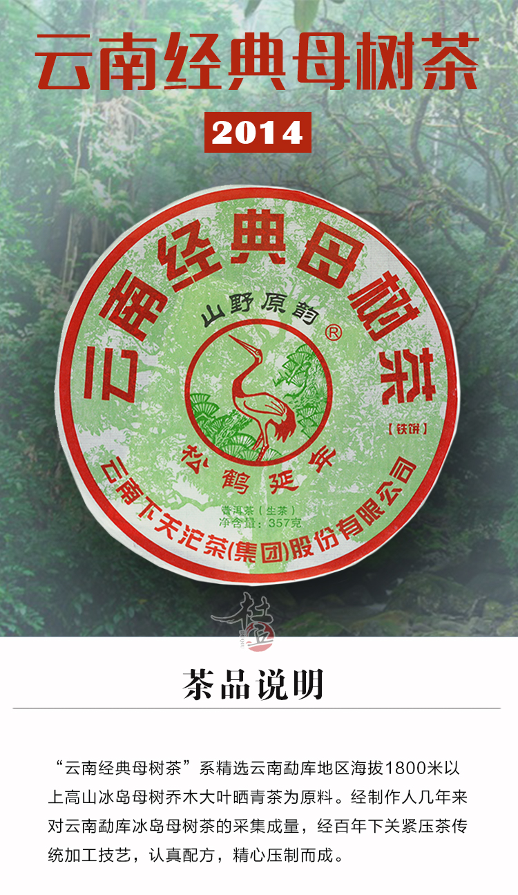 | 产品规格 | 357g/饼、7饼/提、4提/箱 |