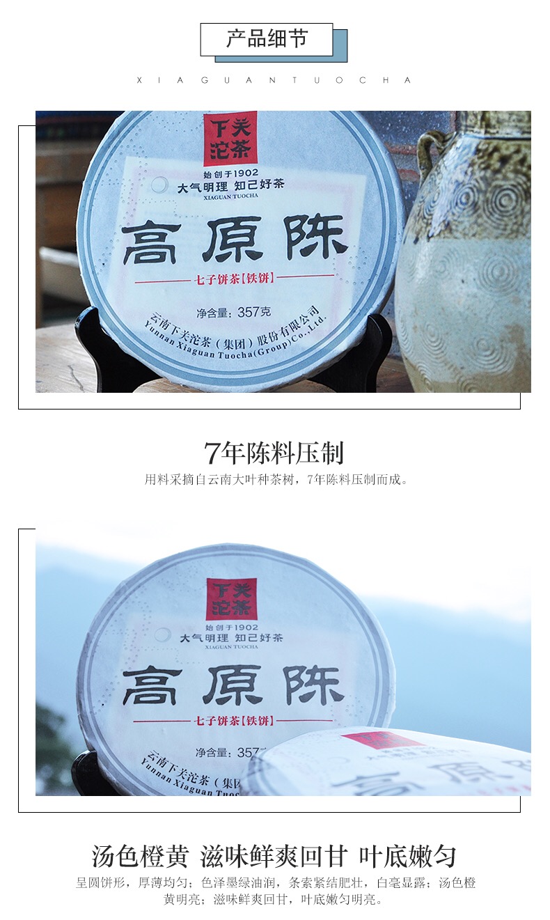 七年陈高原陈 普洱 下关 2014年 七年陈 高原陈 饼茶 铁饼 357g 生茶